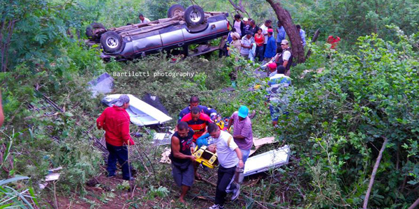 A veraneio de cor preta, e placa não identificada, caiu em um local de difícil acesso após a capotagem. Uma unidade do SAMU foi chamada para atender os passageiros com ferimentos mais graves, e os encaminharam para o Hospital São Francisco. Os demais, com escoriações mais leves, foram socorridos por curiosos que passavam pelo local.