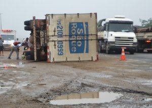 O motorista Nadilson de Jesus informou que pegou o veículo na garagem do Comercial São Roque e seguia viagem para Jequié, quando uma peça que segura o feixe de molas se soltou e ele perdeu o controle do veículo. Ao passar por um buraco na pista, o caminhão entrou no sentido contrário e por pouco não provocou um grave acidente.