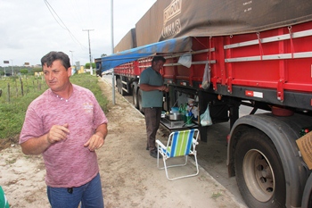Claudemir Maraschin,51 anos, (Dest.) residente no Rio Grande do Sul disse que é muito desorganizado o trabalho da CONAB em Coité, segundo ele, quando chegou foi informado que estava em greve e não pôde descarregar, passado três dias quando procurou a CONAB exigindo as diárias dele, pois disse que há uma lei no governo Dilma que passado 24 horas a descarga não tiver acontecido, ele tem direito a estadia e quando foi falar ao responsável, o mesmo informou que não podia fazer nada. “Estou aqui há duas semanas, cheguei dia 5 às 18h e passado três dias quando procurei o responsável exigindo meus direitos ele disse que não podia fazer nada. Agora eu não descarrego enquanto não resolver meu problema”, disse o carreteiro indignado.
