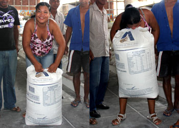 O desafio aconteceu na manhã desta segunda-feira, 26, no Mercado Municipal de Conceição do Coité, onde reuniu dezenas de pessoas para acompanhar a apresentação. O mais curioso é que fazia 1 ano e oito meses que ela não praticava tal atividade, pois, embora seja natural da região do Povoado de Maracujá, em Coité, ela mora em São Paulo desde 2007, “ lá até já tentei fazer isso, mas não se encontra saco de farinha de 50 kg. A última vez que levantei foi numa viagem de passeio aqui ( Coité) em dezembro de 2011”, conta.