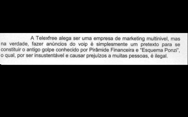 Foto: Reprodução Trecho da ação civil pública do Ministério Público do Acre (MP-AC) sobre a Telexfree