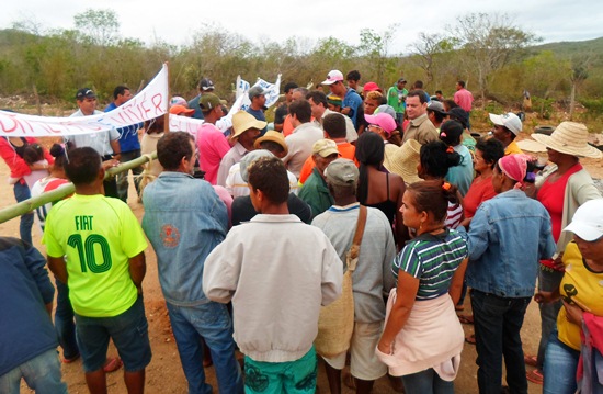 manifestação contra yamana-2A Yamana Gold, informou aos moradores do Povoado Nova Esperança, que para o relocação do povoado para aproximadamente 9 km daquele local, onde a empresa já fez um levantamento de estudos, depende do estudo feito por técnicos do INCRA, que estão sendo acionados para vir solucionar este impasse.
