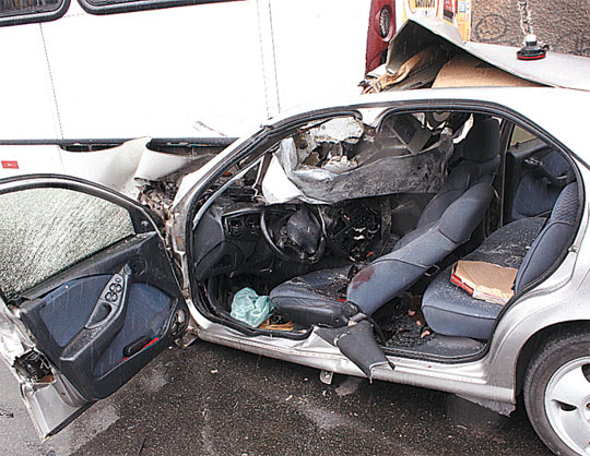 O cabo reformado do Exército Egnaldo Santos Neris, 32 anos, morreu após colidir com um Fiat Brava no fundo do ônibus da empresa São Cristóvão, que fazia a linha Sussuarana/Barroquinha, ontem pela manhã, na Avenida Heitor Dias, em Vila Laura. Com o impacto, o carro prata, de placa GYZ-6719, ficou completamente destruído e o corpo de Egnaldo se prendeu entre as ferragens.