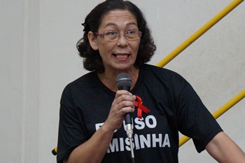 Rita de CassiaUm dos momentos mais marcantes foi durante a projeção do vídeo sobre a história de uma convivente com o vírus, a professora Rita de Cássia (foto). Assim que o vídeo terminou, a protagonista se apresentou ao público dizendo: “essa que vocês viram relatando sua historia de vida no vídeo sou eu”.