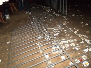 O cantor Tayrone interrompeu a apresentação e reclamou contra quem tinha arremessado as latas. “Ih, que feio! Cerveja é para beber não para jogar nos colegas.Mais em meio a pouca quantidade de seguranças no evento continuaram a provocação até que o cantor deixou o palco, o publico começou a derrubar uma grande que de acesso a Área Vip, houve empurra, empurra, muita correria, vários saques de cervejas em lata a policia militar tentou conter os ânimos, mas foi em vão diante do grande público