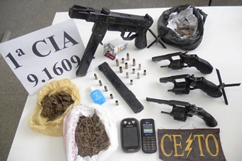 Segundo a Polícia, com os mesmos foi apreendido uma submetralhadora com dois carregadores, três revolveres municiados, uma grande quantidade de maconha, bem como uma moto que, segundo denuncias anônimas foi utilizada para a prática do homicídio da vítima Adriano. “Vale salientar que esta operação teve o início desde os primeiros homicídios ocorridos nesta semana na cidade de Serrinha, bem como o elemento alvejado conhecido por Dão é presidiário e estava posto em liberdade através do indulto de natal, o Pituka era ex-presidiário, todos presos por diversos crimes”, segundo nota divulgada pelo 16º Batalhão.