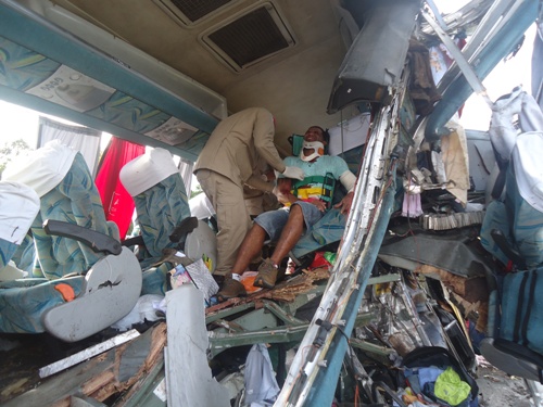 De acordo com Ana Paula, ela estava sentada na poltrona 48, que fica no fundo do ônibus, e dormia com o filho no momento do acidente. Ela conta que acordou com o impacto da batida. “Eu estava dormindo, não vi muita coisa, mas quando acordei estava tudo destruído, bagunçado. Já tinha muita gente no chão, muitos mortos. Só tinham dois que estavam dentro do ônibus e estavam aparentemente bem. Foi uma história de terror”, conta. Ela informou que o trator atingiu até o meio do ônibus e por isso ela e o filho saíram apenas com arranhões superficiais.