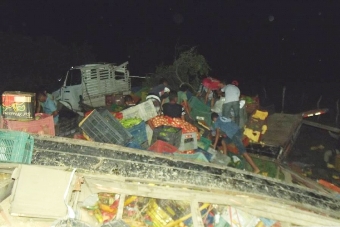 A Polícia Militar também esteve no local para registrar ocorrência e sinalizar a via. A carga de frutas foi recuperada quase na metade e removida em outro caminhão, já os medicamentos tiveram perda total. Os nomes dos envolvidos foram preservados.
