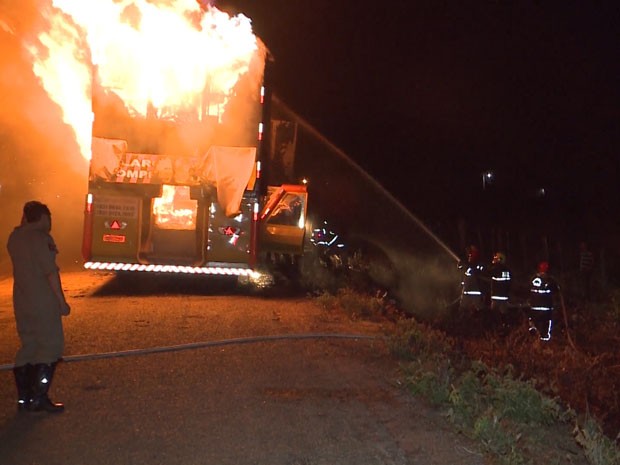 “Tinha bastante material inflamável na boleia, como plásticos, material de propaganda, além das caixas de som que são de madeira. Isso fez com que o fogo se alastrasse rapidamente. O veículo foi completamente destruído”, afirmou o soldado José Wilson da Silva Gomes, do Corpo de Bombeiros de Cajazeiras.