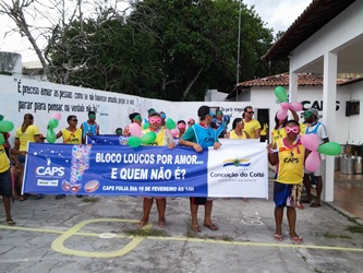 Não foi diferente, no último evento promovido em comemoração ao Carnaval. No dia 19 de fevereiro de 2014, o CAPS organizou com os usuários, um bloco de rua intitulado como “Loucos por Amor… e quem não é?”, o qual circulou no centro da cidade, ao longo da área do comércio e Mercado Municipal e contou com a participação do Batuke Social que garantiu a musicalidade e alegria que não poderiam faltar numa comemoração desta natureza.