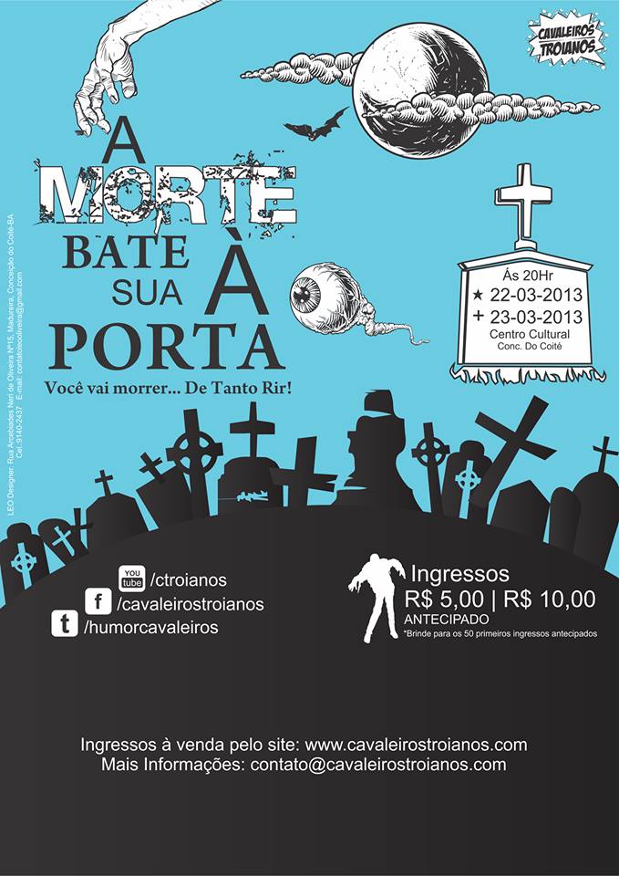 O grupo teatral coiteense Cavaleiros Troianos, irá apresentar o espetáculo “A Morte Bate a Sua Porta” neste sábado e domingo (22 e 23) no Centro Cultural.