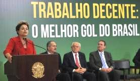 Ao participar de ato que celebrou o compromisso com empregadores e centrais sindicais para a melhoria das condições de trabalho durante a Copa do Mundo, a presidenta Dilma Rousseff defendeu que a promoção do trabalho decente não deve ser levantada apenas durante o Mundial.