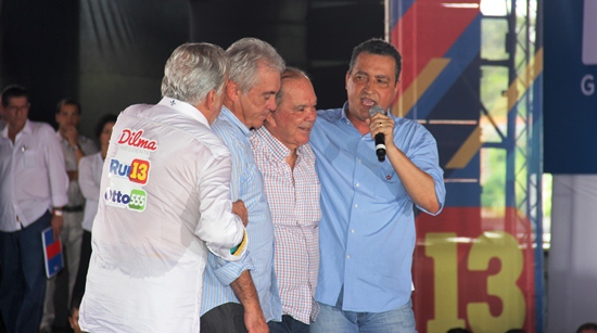 Prefeitos na plateia e palanque que mais lembrou palco digno de grandes festas