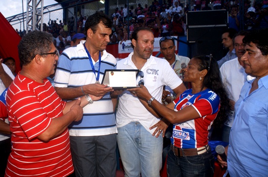 Rilza levou São Francisco do Conde ao primeiro titulo de Campeão do Intermunicipal em 2011. Ela entrega uma placa ao então prefeito de Santaluz Junior -vice-campeão.Foto: Raimundo Mascarenhas
