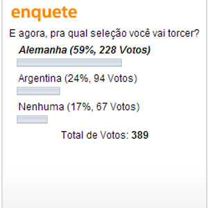 Torcida pela Alemanha é quase três vezes maior que para Argentina; aponta enquete do Calila