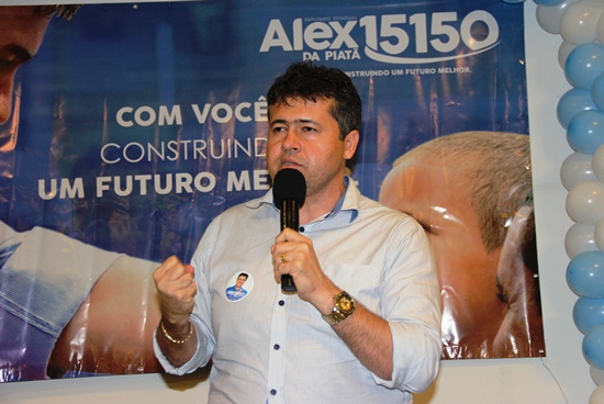 Alex ao fazer ser pronunciamento se disse surpreso pela quantidade de pessoas naquela tarde, agradeceu a presença e disse que se elas estavam ali, era por acreditar no seu trabalho.”Podem ficar certos que não irei decepcionar vocês, Deus vai iluminar nossa campanha, vamos sair vitoriosos e pretendo voltar aqui nesse mesmo espaço para olhar nos olhos de todos vocês para dizer muito obrigado por confiar e vamos trabalhar incansavelmente para corresponder as expectativas de cada um que me ouve”, disse o candidato.