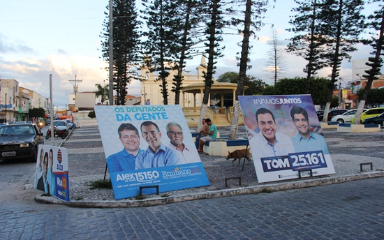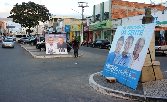Em Conceição do Coité principalmente no centro da cidade existem muitas placas de candidatos que se enquadram como irregulares, quando o item diz respeito a jardins localizados em áreas públicas, conforme o CN registrou.