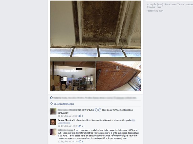 Segundo Oliveira, dentre outros pontos, a reforma prevê a pintura, instalação de ar condicionado, recuperação do material elétrico, colocação de prateleiras e troca da rede externa de proteção contra insetos. Ele conta que a iniciativa tem como objetivo proporcionar mais conforto para pacientes e funcionários do hospital. Em contato com o G1, a assessoria de comunicação da unidade informou que tem conhecimento da iniciativa e que apoia atos como esse.