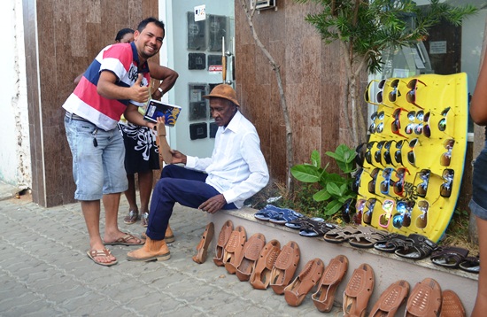 O aposentado Francisco Alves de Oliveira, 79 anos, residente no Bairro João Paulo II, em Bom Jesus da Lapa, externou sua fé no santo Padroeiro do município e acostuma neste período abrir sua residência para colaborar com os romeiros que vem de locais distante e necessita de algum tipo de apoio, a exemplo do banho. Ele aproveitou o grande número de camelô na cidade e comprou um “bota” de couro e pagou R$ 20, “tá barata”, brincou o aposentado.