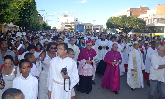 O ponto alto da festa aconteceu no final da tarde com a com a procissão que percorreu as ruas do centro da cidade e contou om a presença de vários padres e dos bispos, Ceslau Stanula, de Itabuna e Josafá Menezes da Silva, de Barreiras e administrador da Diocese de Bom Jesus da Lapa.
