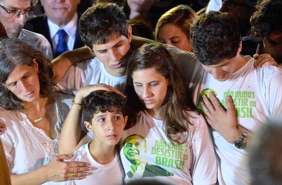 Próximo à cova, apenas a familia e amigos. Houve chuva de flores. O último adeus ao pai, irmão, filho, tio, neto, sobrinho foi observado atentamente pela multidão, que gritava pedindo justiça e que as causas do acidente sejam esclarecidas. A esposa, Renata Campos, quatro dos cinco filhos do casal, a mãe, Ana Arraes, que estiveram ao lado do caixão desde a madruga quando foi trazido de São Paulo, e o irmão, Antônio Campos estavam entre os mais emocionados.