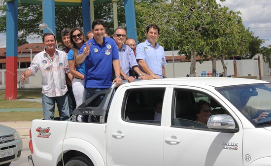 A movimentação começou antes do meio dia quando as lideranças se deslocaram para o aeroporto da cidade para receber o deputado federal e candidato a reeleição Artur Maia e o candidato a deputado estadual Thiago Simões. Uma grande quantidade de veículos proporcionou uma carreta que saiu do aeroporto, cruzou algumas ruas do centro da cidade, até chegar ao Clube da Associação Atlética Banco do Brasil – AABB onde outro grande número de pessoas aguardavam a comitiva.