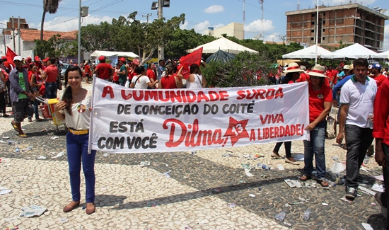 As cidades de Juazeiro, na Bahia e Petrolina, Pernambuco, foram tomadas por milhares de pessoas que chegaram de várias regiões do Nordeste na madrugada e manhã de terça-feira (21), para engrossarem o apoio à reeleição da Presidente Dilma Rousseff (13) em um evento promovido pela ONG Articulação do Semiárido (ASA). Os ônibus iam estacionando as margens da Orla Nova em Juazeiro e os agricultores seguiam até o local onde estava sendo organizada a caminhada até a Praça da Catedral, no vizinho município de Petrolina.