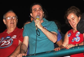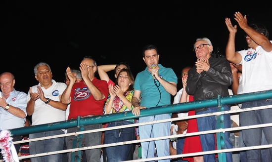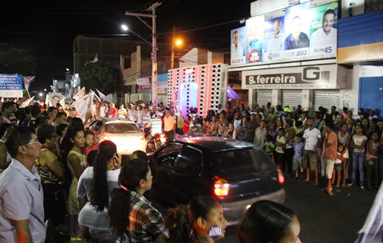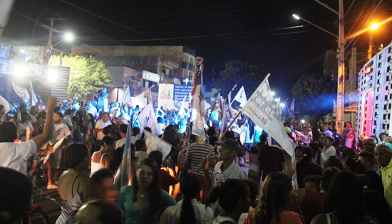 Tom Araújo ao lado do ex-deputado Emério Resedá e do ex-prefeito Renato Souza desfilaram em uma caminhonete e eram saudados pelas pessoas que saiam de suas casas e no centro comercial que lotou em frente ao comitê para receber a comitiva ao som de um mine trio em um paredão tocando músicas da campanha a militância fez a festa.