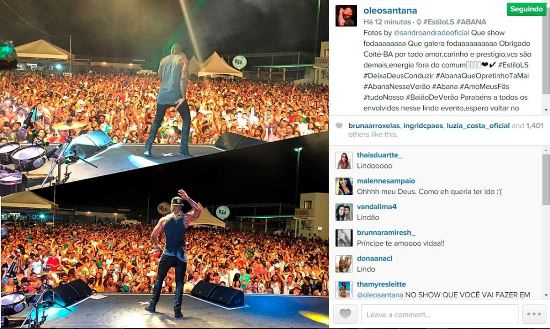 Nas redes sociais. Léo Santana demonstra sua satisfação em participar da festa e agradece apoio dos fãs.