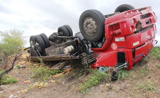 O caminhoneiro Renato Rossi Magalhães, 34 anos, morreu depois de capotar o caminhão Ford Cargo 2422, placa KKF 4146 licença de Custódia no Estado de Pernambuco, carregado de goiaba por volta das 04h da madrugada desta sexta-feira (21) na BR 324 trecho Vila Aparecida/Riachão do Jacuípe.