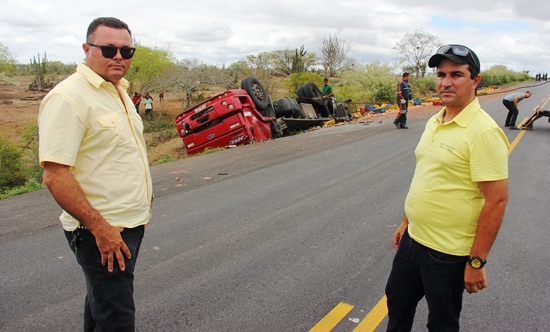 Somente a Policia Técnica pode definir a causa real do acidente, mas o amigo Francisco disse que o desnível do acostamento pode ter sido o causador.Eu sei o que é dirigir caminhão, se sair da pista no nível desse que estamos vendo aqui a depender da forma como ele puxa o volante a virada é inevitável, afirmou Francisco.