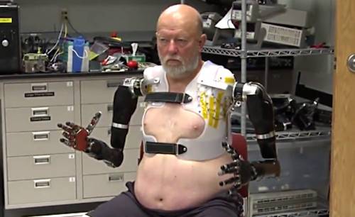Após perder os dois braços em uma acidente elétrico há 40 anos atrás, o americano Les Baugh entrou para história ao se tornar o primeiro homem amputado no nível do ombro a controlar próteses dos dois braços usando somente o poder da mente. Ele fez parte de um estudo do Laboratório de Física Aplicada da Universirdade Johns Hopkins, no Condado de Howard, Maryland. Depois de décadas de pesquisa e experimentos, o instituto convidou Baugh para uma bateria de testes em duas semanas em junho deste ano.