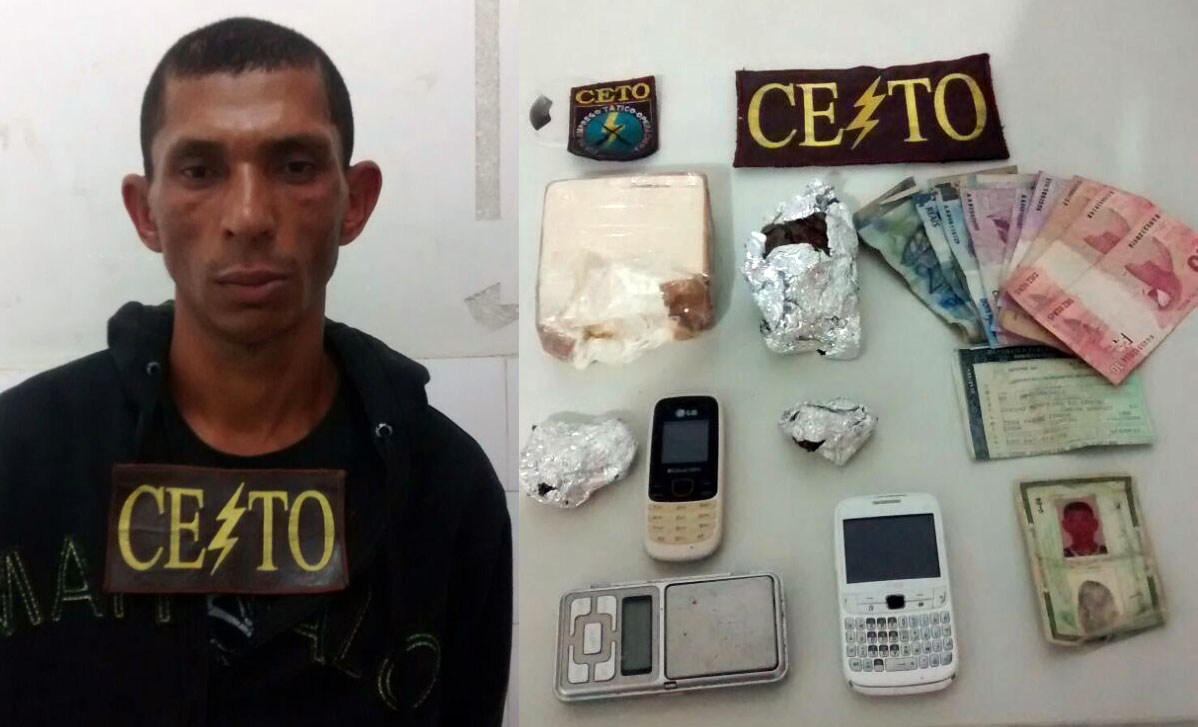 Uma operação conjunta realizada entre policiais militares da Companhia de Emprego Tático Operacional (CETO) e do 4º Pelotão da Polícia Militar de Santaluz prendeu um homem identificado como Sandro, conhecido como “Neném”, na noite desta quinta-feira (11), em Nova Fátima, por tráfico de drogas.
