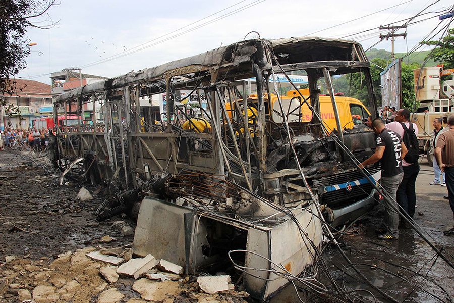 Oito pessoas morreram e cinco ficaram gravemente feridas após um ônibus bater em um poste em São Gonçalo, na região metropolitana do Rio de Janeiro. Após a colisão, o veículo ainda explodiu.