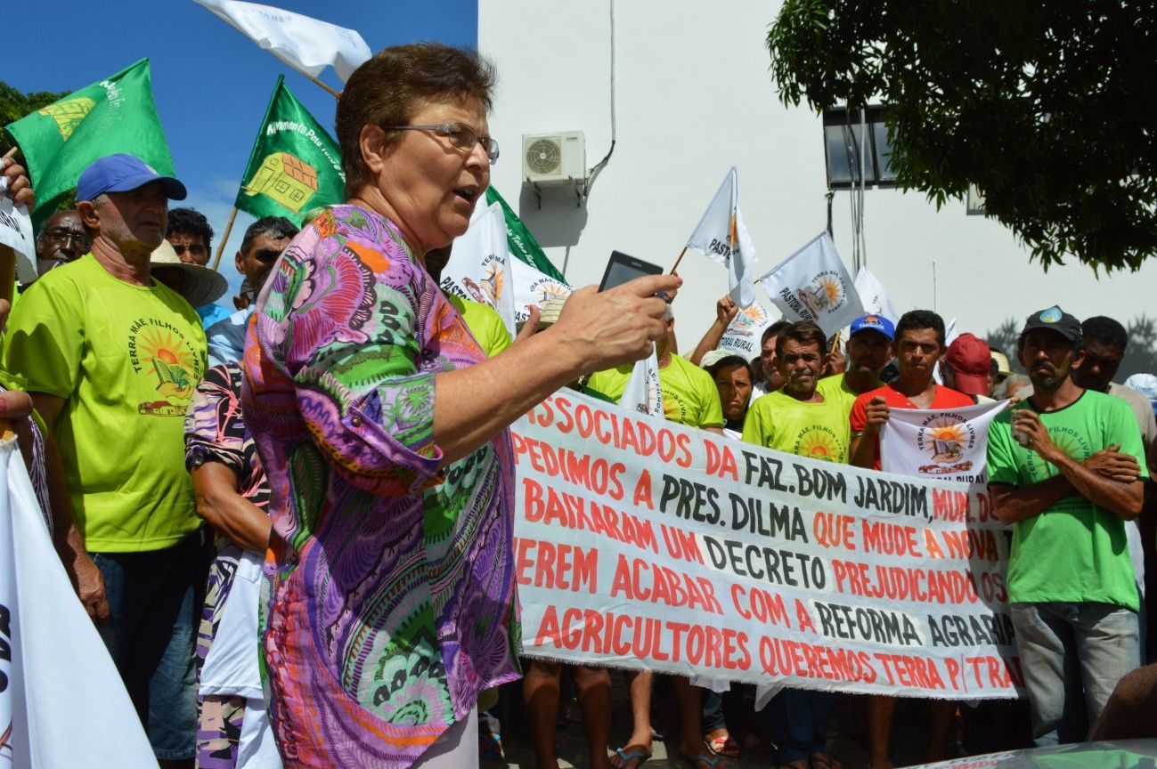 Após a reunião com o presidente da Assembléia Legislativa, deputados estaduais e representantes dos movimentos, a parlamentar se juntou aos manifestantes, marchando até o INCRA, na busca de resolver às suas reivindicações, e uma delas, é a agilidade na Reforma Agrária.