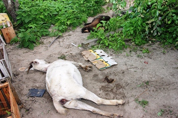 As duas novilhas foram picadas, mas aparentemente não sofreram a mesma gravidade que as galinhas e as criações. Segundo dona Zuleide os bovinos atenderam ao seu chamado e no costume dela chamar para dar ração o animais deixaram o local.