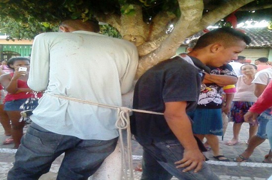 Dois homens suspeitos de praticar assaltos no distrito de Alto Alegre, em Monte Santo, foram amarrados por moradores em uma árvore na praça principal da localidade. O fato foi registrado no fim da tarde desta terça-feira(13). Os moradores mantiveram os suspeito amarrados até a chegada da polícia.