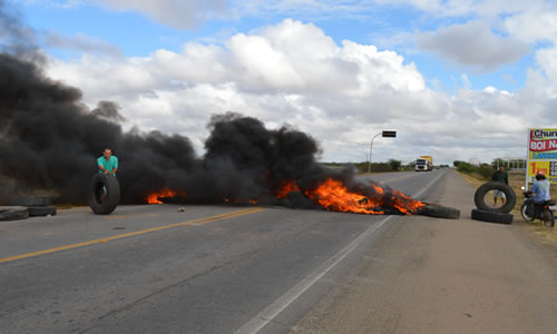 A via próxima à entrada do município de Capim Grosso, inicialmente bloqueada totalmente, está sendo liberada aos poucos. Até às 11h30 de hoje, os caminhoneiros permitiram somente a passagem de ônibus, veículos de passeio e caminhões com produtos perecíveis.