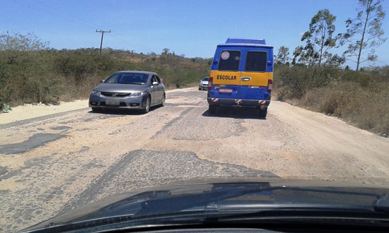 Já no trecho de Serrinha, foi feito tapa buraco que não chega a 20% do que é necessário, tornando a situação de trafego complicada principalmente do Povoado de Mato Fino até Serrinha, trecho de aproximadamente 15 km, nas proximidades do entroncamento de Ichu, em dois pontos críticos e na chegada da cidade.