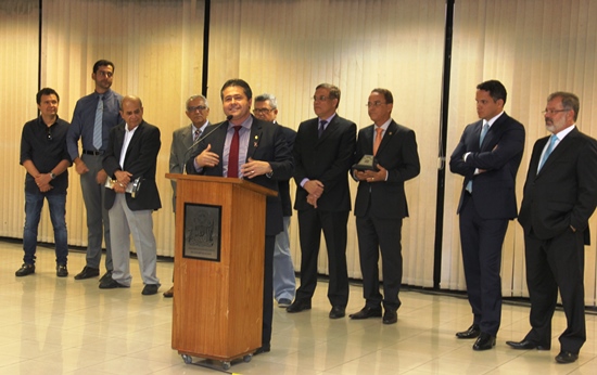 Deputado Pablo Barrozo recebe o troféu do recém empossado presidente do Comitê de Imprensa jornalista Oswaldo Lyra.