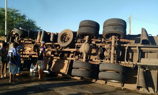 De acordo com populares um caminhão tombou por volta das 03 horas da madrugada desta quinta-feira, 17 de março de 2016, em Capim Grosso.