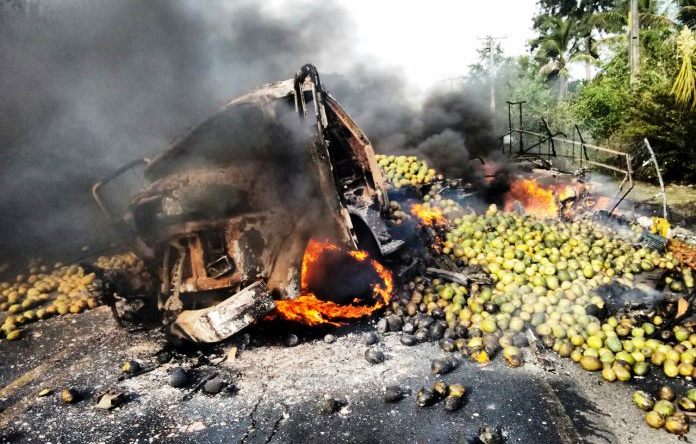 O caminhão envolvido na batida estava carregado de laranjas e de acordo com a PRF também pegou fogo. A pista ficou bloqueada. Uma equipe do Corpo de Bombeiros de Alagoinhas foi acionada e conseguiu debelar as chamas por volta das 17h.
