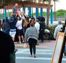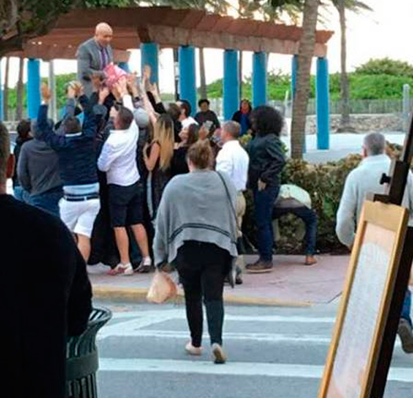 Homem distribui dinheiro em rua movimentada de Miami, nos Estados Unidos (Foto: Reprodução/Facebook)