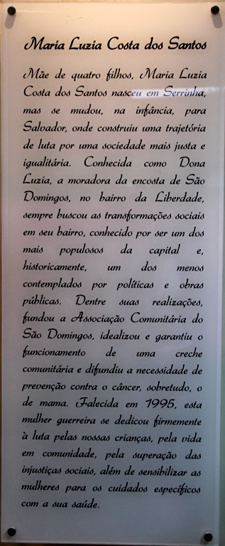 Conhecida como Dona Luzia, moradora da encosta de São Domingos, no bairro da Liberdade, ali viveu a maior parte de sua vida e criou seus quatro filhos, Rui, Rose, Roberval e Robson.