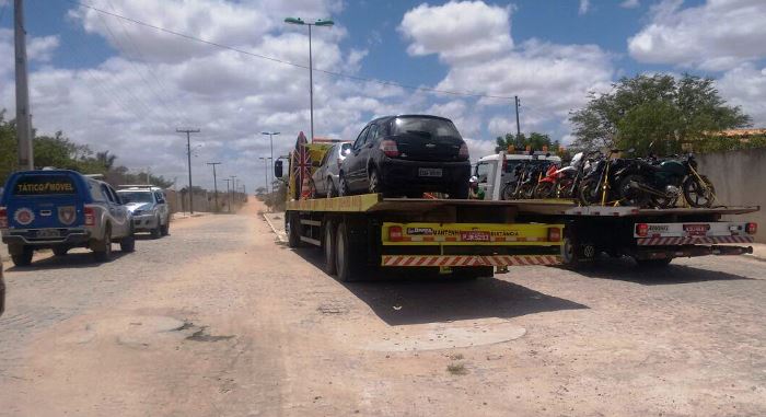 Foram apreendidos 80 veículos com irregularidades, dentre elas ausência de documentação de porte obrigatório, adulteração de características originais do veículo, chassi e motor pinado, descargas adulteradas. Foi desarticulado um paredão de som automotivo no povoado do Cachimbo em Ichu, na oportunidade em que foram notificados diversos veículos com irregularidades.