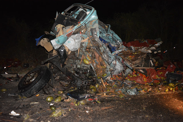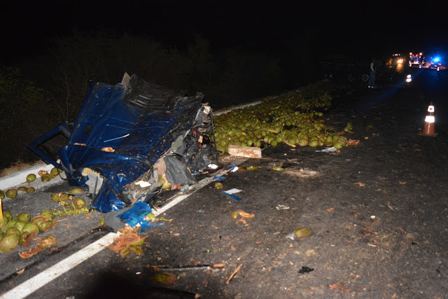 Segundo informações o acidente da noite de terça-feira (28/02), último dia do mês de fevereiro, ocorreu no Km 113, trecho do Povoado de Catuni da Estrada. De acordo com a Polícia Rodoviária Federal – PRF o sinistro ocorreu por volta 22h30, envolvendo dois caminhões que colidiram frontalmente, sendo um Ford Cargo, placas MLE-0958, licença de Anchieta-SC, carregando com cocos que saiu de Juazeiro com destino a Salvador, no sentido oposto seguia uma Mercedes Benz 1114 placa JMB-4610, licença de Campo Formoso-BA que transportava tomates.