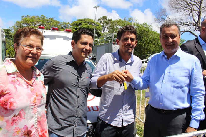 Na manhã desta quarta-feira (15), o chefe do executivo baiano, Rui Costa, entregou, no estacionamento da governadoria, localizada no Centro Administrativo da Bahia (CAB), 78 ambulâncias para os municípios do estado, que ajudarão na saúde dos cidadãos. Por Indicação da deputada estadual Fátima Nunes (PT), a cidade de Adustina foi contemplada com o veículo. Ao lado da parlamentar, de prefeito Paulo Sérgio dos Santos, do secretário de Saúde Eugênio Santana e do secretário de Agricultura, Alex Silvio Santana, o governador entregou as chaves do automóvel.