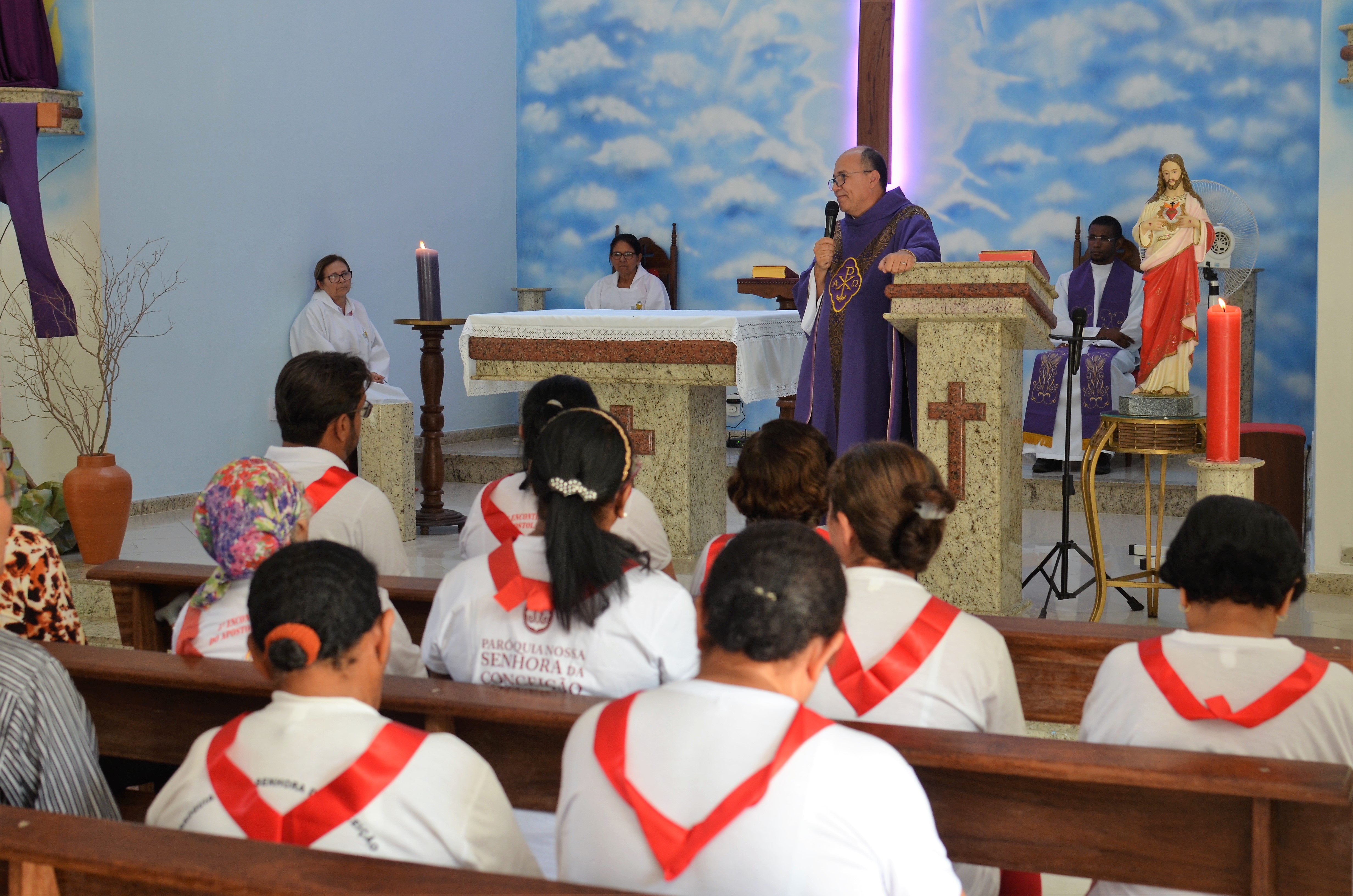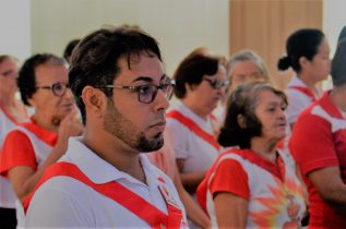 Elas são membros do Apostolado da Oração, “a fita é o sinal de entrega daqueles que foram chamados para servir ao Sagrado Coração de Jesus, a cor vermelha simboliza o sangue, a vida de doação plena e a medalha é para lembrar sempre do quanto Ele (Jesus) nos ama”, contou aposentada Maria Pinho, 75 anos.