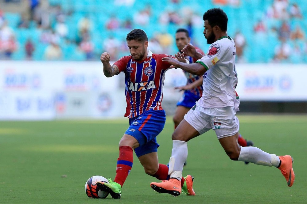 O Bahia tocava a bola até encontrar um espaço para penetrar na forte marcação do adversário. A missão de fazer ao menos quatro gols, que já estava complicada para o Fluminense, ficou ainda mais aos 29 minutos, quando o lateral-direito Edson fez falta dura em Renê Júnior, atingindo o volante tricolor por cima, com o braço, e por baixo, com as travas da chuteira. O árbitro aplicou o cartão vermelho direto.