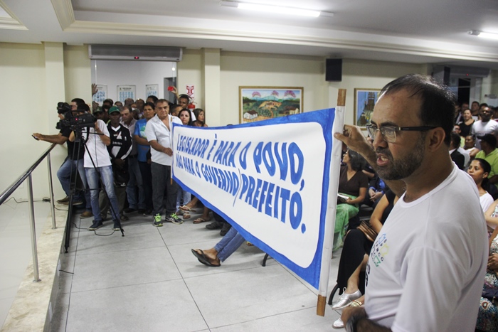 ” A categoria, principalmente os apoios que ganha apenas o salário minimo está revoltada com a atitude do gestor em deixar seus salários congelados desde 2015, no valor de R$ 788. Vale lembrar que essa manifestação que começou hoje (ontem) a gente vai continuar na próxima segunda-feira, creio que teremos um público maior reivindicando, pois, são perdas incalculáveis para o servidor público, visto que, desde a formação deste município enquanto estatuto de 1996 pra cá, os direitos que foram conquistados praticamente, ele (prefeito) retira ou fazer perder em parte os benefícios. Parabenizo os servidores que se fizeram presentes nessa grande mobilização”.